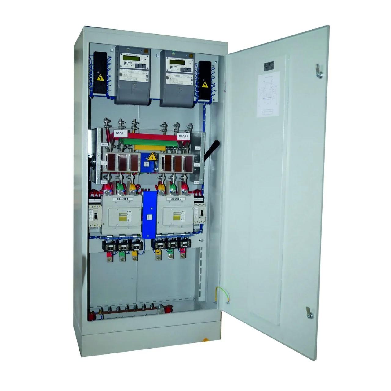Вводно-распределительные устройства ВРУ-1 предназначены для приема, распределения и учета электроэнергии в сетях 380/220B трехфазного переменного тока частоты 50Гц, а также для защиты линий при перегрузках и коротких замыканиях. Вводно-распределительные устройства комплектуются из панелей одностороннего обслуживания и могут быть однопанельными и многопанельными. Ошиновка ВРУ выдерживает без повреждений ударный ток короткого замыкания 10 кА.